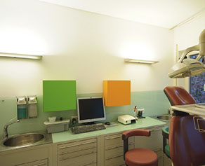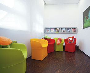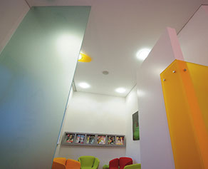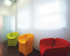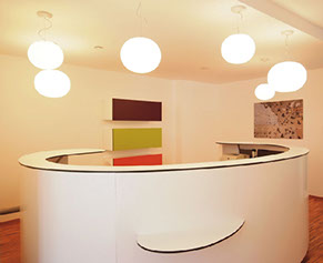 Eine harmonische Farbgebung, die in Einklang mit Ausstattung, Licht und Details steht, erleichtert es dem Patienten, sich seinem Arzt unter Wahrnehmung einer entspannten Atmosphäre zu öffnen.