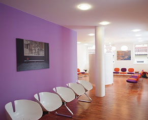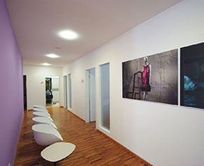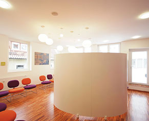 Aus dem sensiblen architektonischen Gesamtkonzept resultiert so eine vertrauensvolle Beziehung zwischen Patient und Arzt. Diese unterstützt die Heilung auf wohltuende und beruhigende Art und Weise.